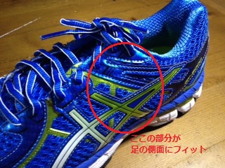 シューズの横の面をうまく足にフィットさせることが